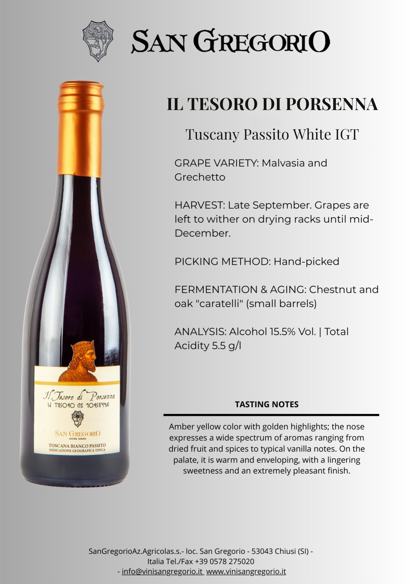 ANALYSIS: Alcohol 15.5% Vol. | Total Acidity 5.5 g/l