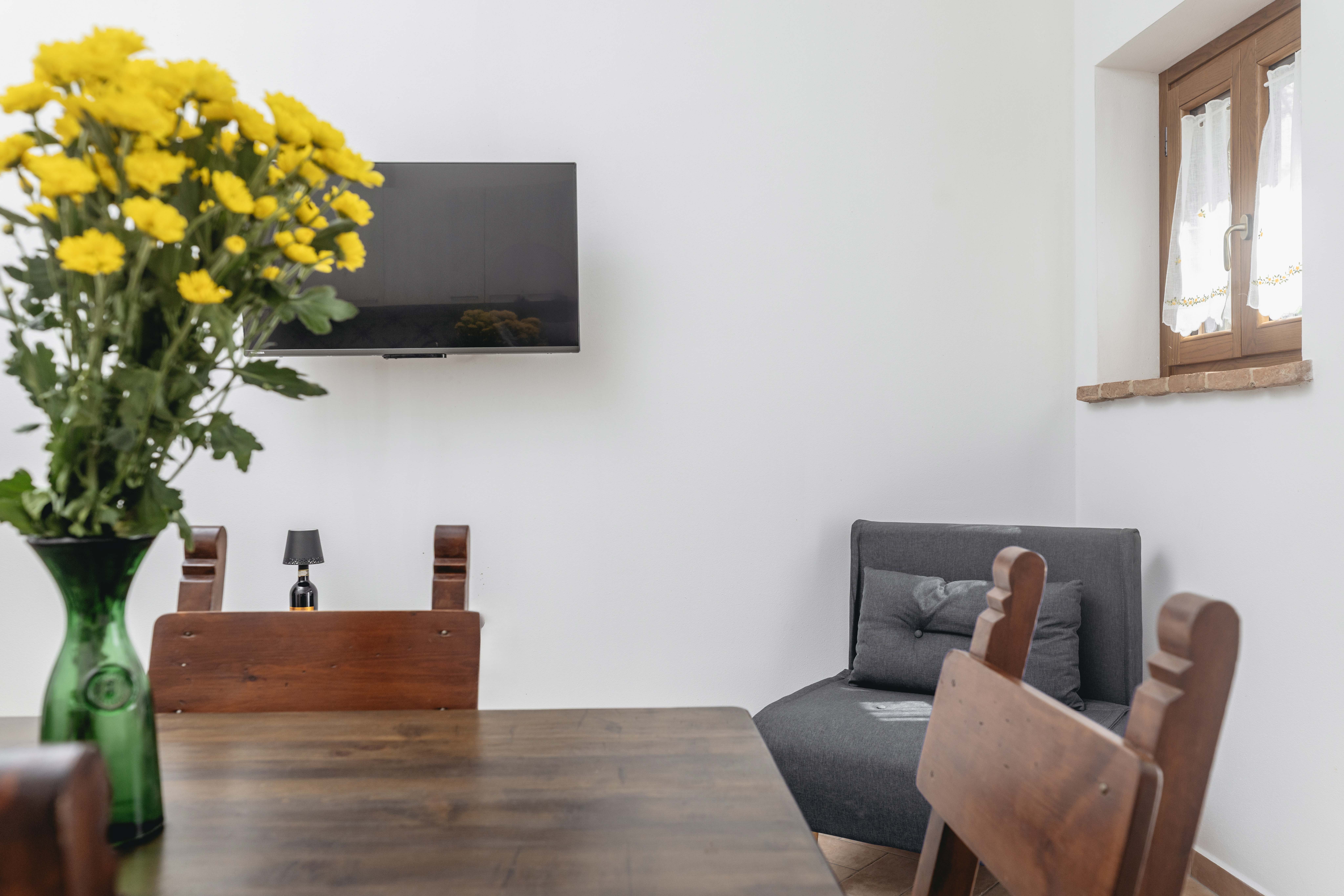 Concedetevi un soggiorno indimenticabile in questo elegante e accogliente appartamento, ideale per coppie o per chi desidera vivere qualche giorno di relax e autenticità toscana. Dotato di ingresso privato e aria condizionata, l’appartamento offre un luminoso soggiorno, una camera da letto e un bagno moderno con doccia. La cucina completamente attrezzata dispone di piano cottura ad induzione, frigorifero, lavastoviglie e tutti gli utensili necessari per cucinare in autonomia. A vostra disposizione anche una macchina per il caffè, una comoda area salotto con divano, una TV a schermo piatto e una rilassante vista sul giardino, perfetta per godersi momenti di quiete.